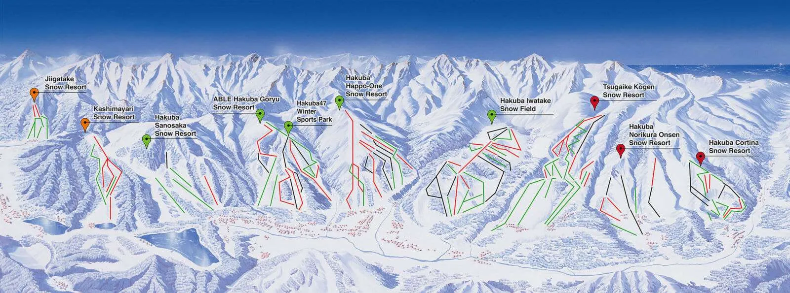 Hakuba Valley (Happo-One/Goryu/47/Cortina) è una stazione sciistica in Giappone con 135 km di piste sciabili, tra i più grandi comprensori in Giappone. Con altitudini da 760 m a 1831 m e un dislivello di 1071 metri. Le piste includono 25 verdi, 40 blu, 35 rosse e 15 nere. Lo skipass giornaliero costa circa 10400 €.