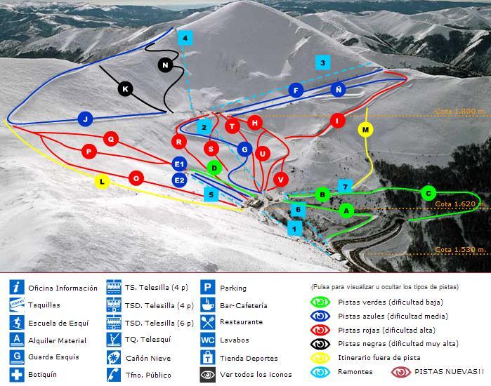 Valdezcaray es una estación de esquí en España con 22.35 km de pistas, ideal para jornadas de esquí sin masificación. Con cotas entre 1550 m y 2125 m de altitud y un desnivel de 575 metros. Sus pistas se distribuyen en 6 verdes, 6 azules, 10 rojas y 2 negras. El forfait de día tiene un precio orientativo de 31 €.