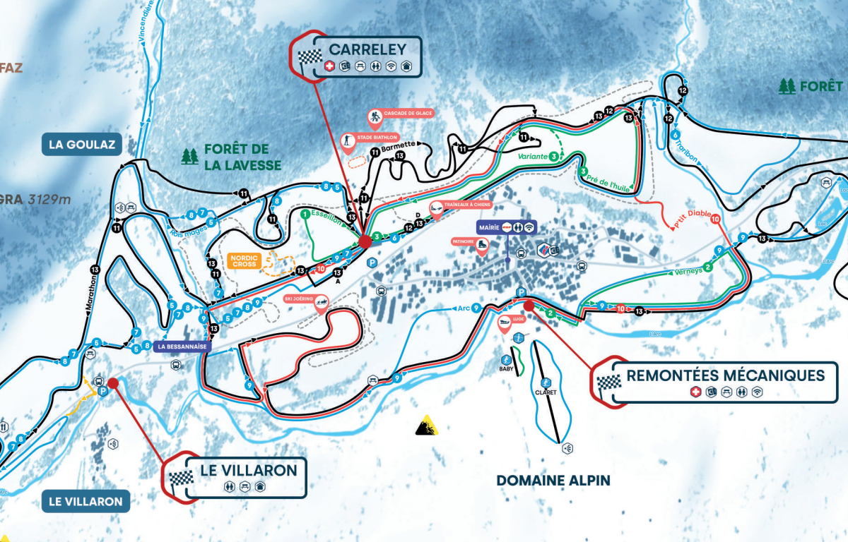 Desglose por nivel Verdes 15 km 3 pistas Azules 45 km 6 pistas Rojas 18 km 1 pistas Negras 55 km 3 pistas