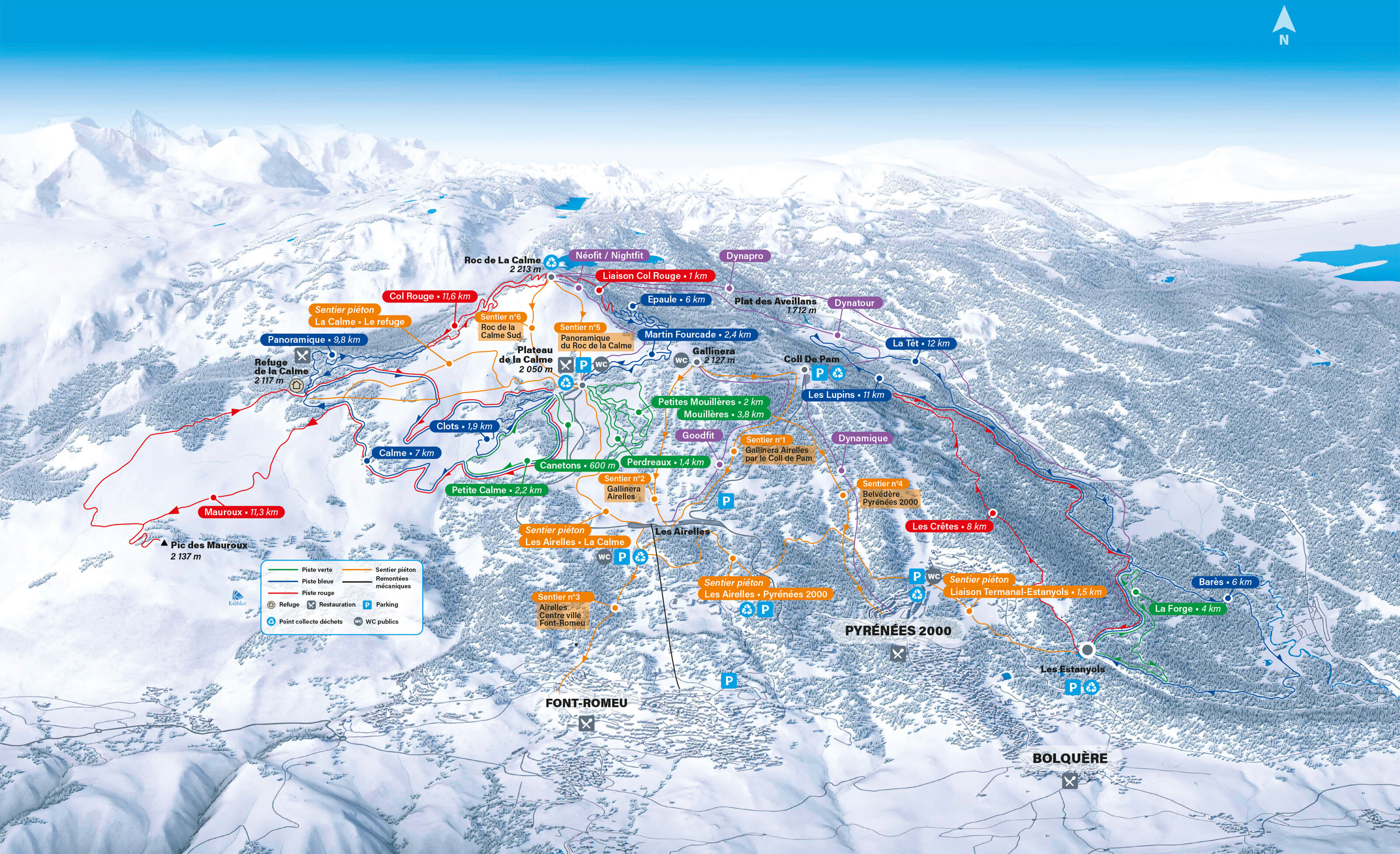 Desglose por nivel Verdes 18 km 5 pistas Azules 35 km 6 pistas Rojas 33 km 4 pistas Negras 25 km 2 pistas
